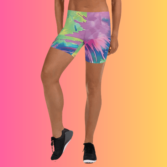 Vibrant Neon Tie-Dye Dance Shorts for EDM Festivals