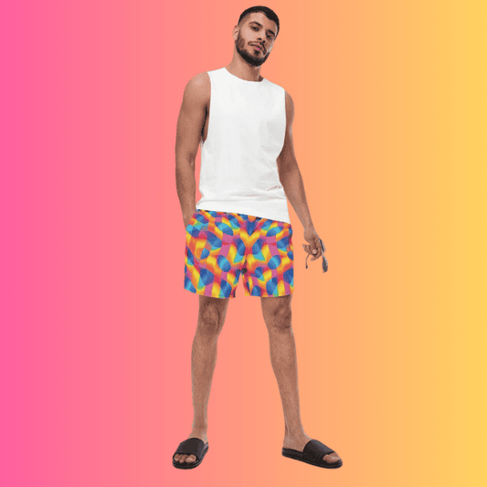 Vibrant Abstract Swim Shorts for EDM Festival Vibes