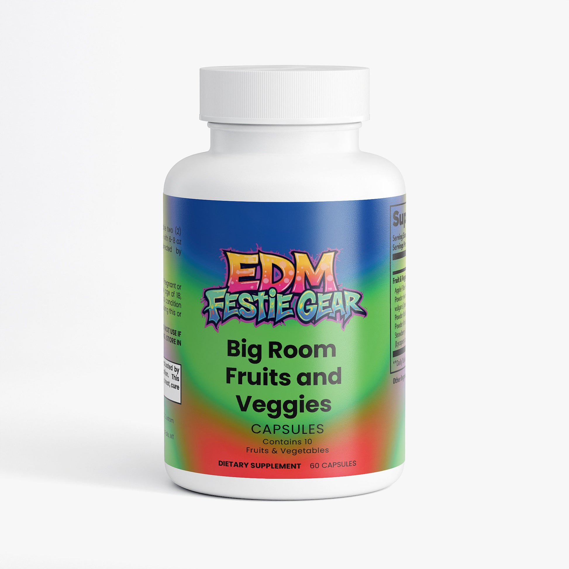 Big Room Fruits and Veggies Fuel your festival energy with nature's ultimate power-up! These vibrant, fresh fruits and veggies are packed with the nutrients you need to keep the vibe alive all night long. Whether you're pre-gaming, recovering post-set, or sustaining that euphoric momentum, this colorful collection delivers clean energy without the crash. Grab your greens, hit the dancefloor, and let the bass drop while your body thrives. Stay hydrated, stay fueled, stay legendary.