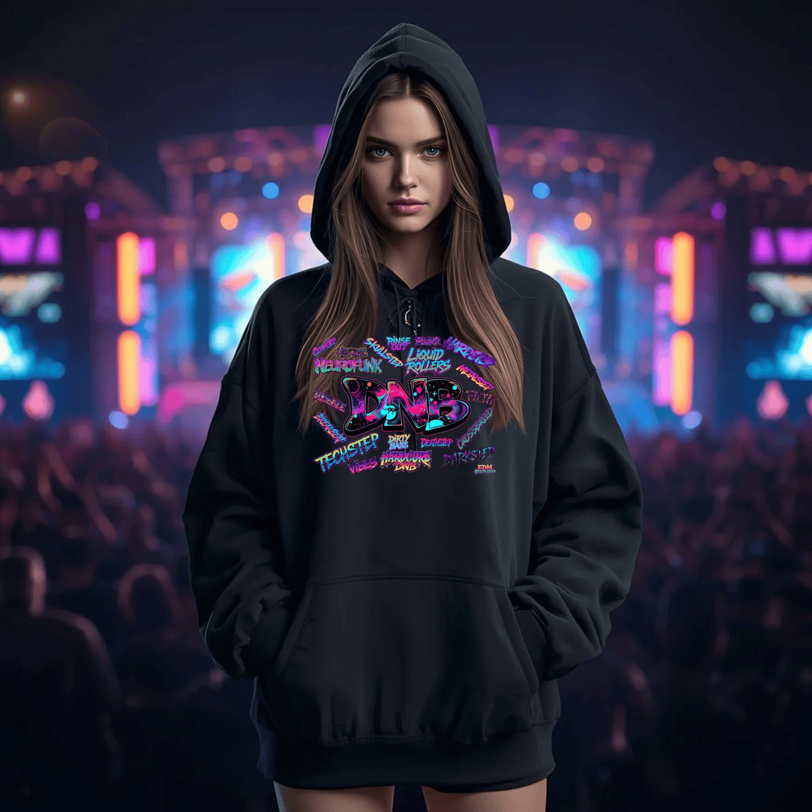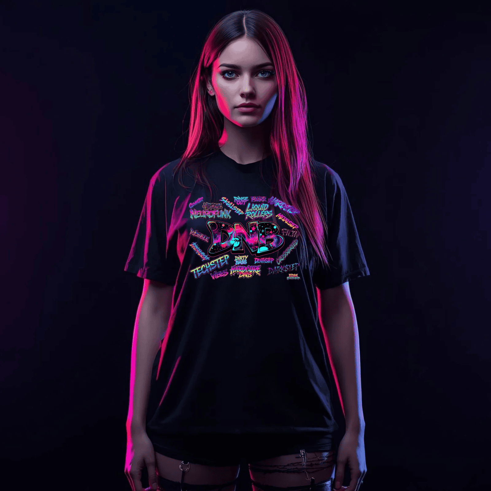 Whether you're hitting the dance floor or vibing with friends, the DNB Word Art T-Shirt makes a statement. It represents the relentless energy and passion of ravers everywhere, embracing the chaos of the night and owning the sound of the bass. Pair it with your favorite LED accessories and glitter to elevate your festival look and feel the magic of the scene.