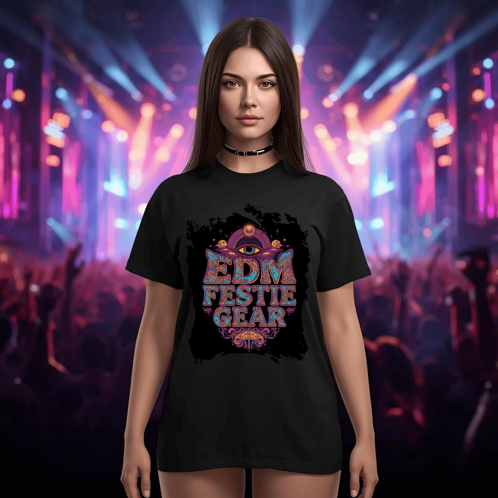 Imagine yourself at a festival, surrounded by pulsating beats and glowing visuals. As you wear this shirt, you’ll feel the energy of the crowd resonate with your inner self, inviting moments of transcendence and connection. The comfy fabric ensures you can dance from sunrise to sunset, while the striking graphics keep all eyes on you.