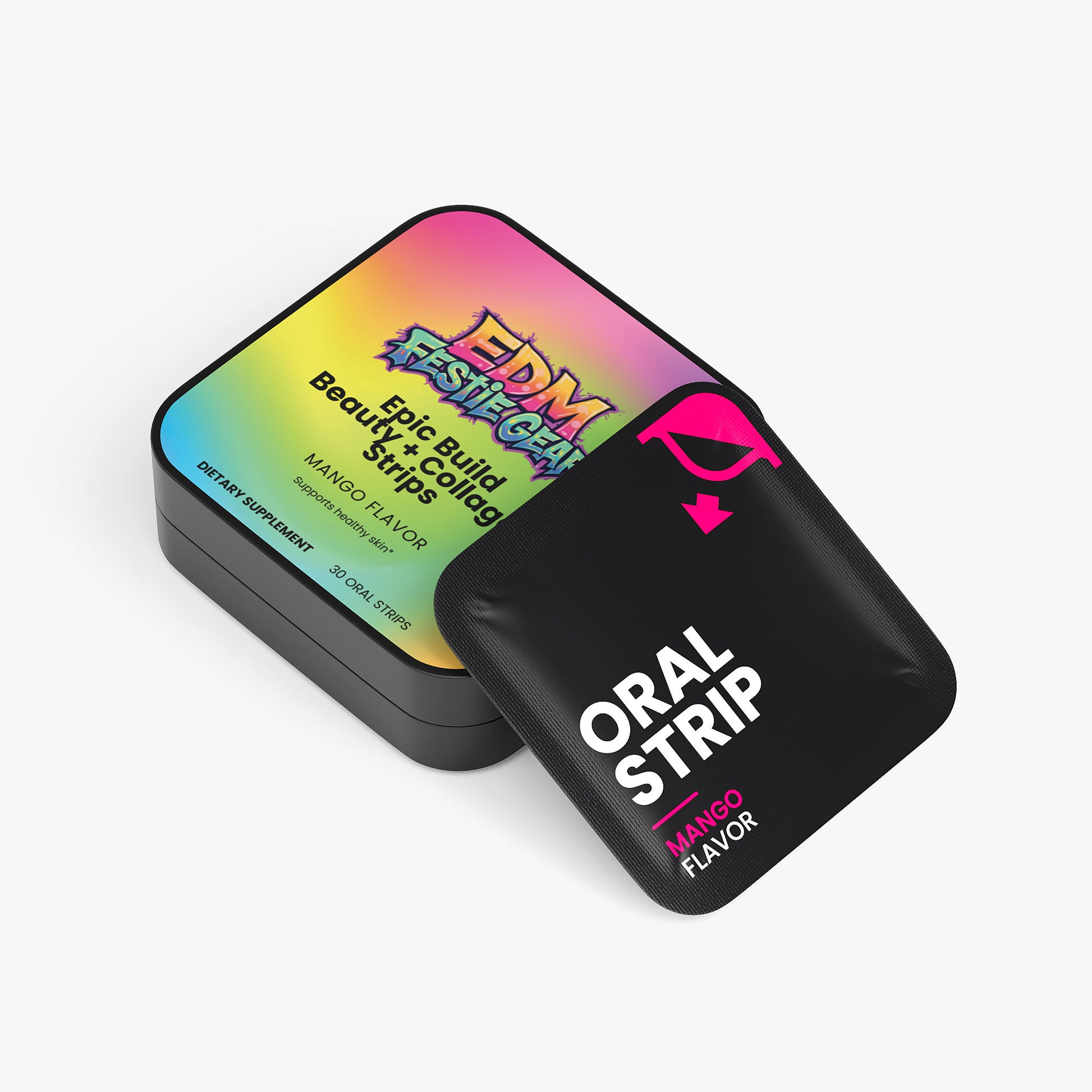 Epic Build Beauty + Collagen Strips Glow up your festival game with strips that hit different. These beauty + collagen strips are your secret weapon for radiant skin before you hit the dancefloor. Packed with collagen to keep your complexion bouncing all night long, they're the vibe for ravers who refuse to compromise on their glow-up. Quick, easy, and absolutely essential for your pre-party routine. Your skin will thank you when the lights drop.