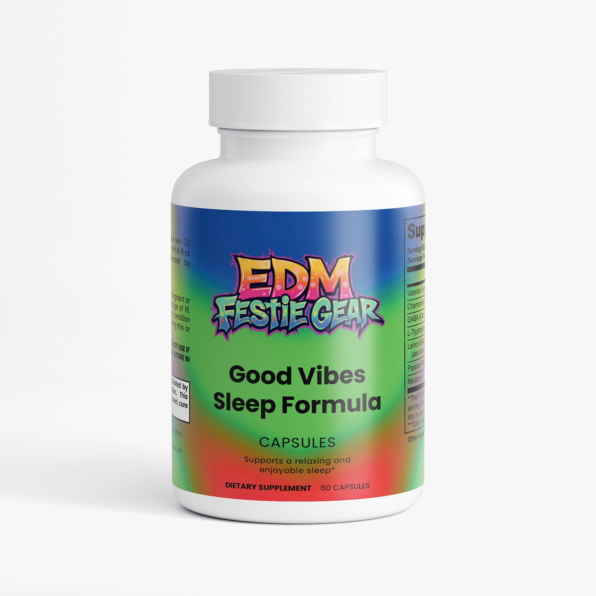 Good Vibes Sleep Formula Drift into dreamland with the ultimate festival recovery essential. This sleep formula is your backstage pass to deep, restorative rest after those all-night raves and high-energy adventures. Packed with natural ingredients designed to help you unwind and recharge, it's the perfect way to bounce back and keep the good vibes flowing. Wake up refreshed, energized, and ready for the next drop. Sleep like you just caught the set of a lifetime.