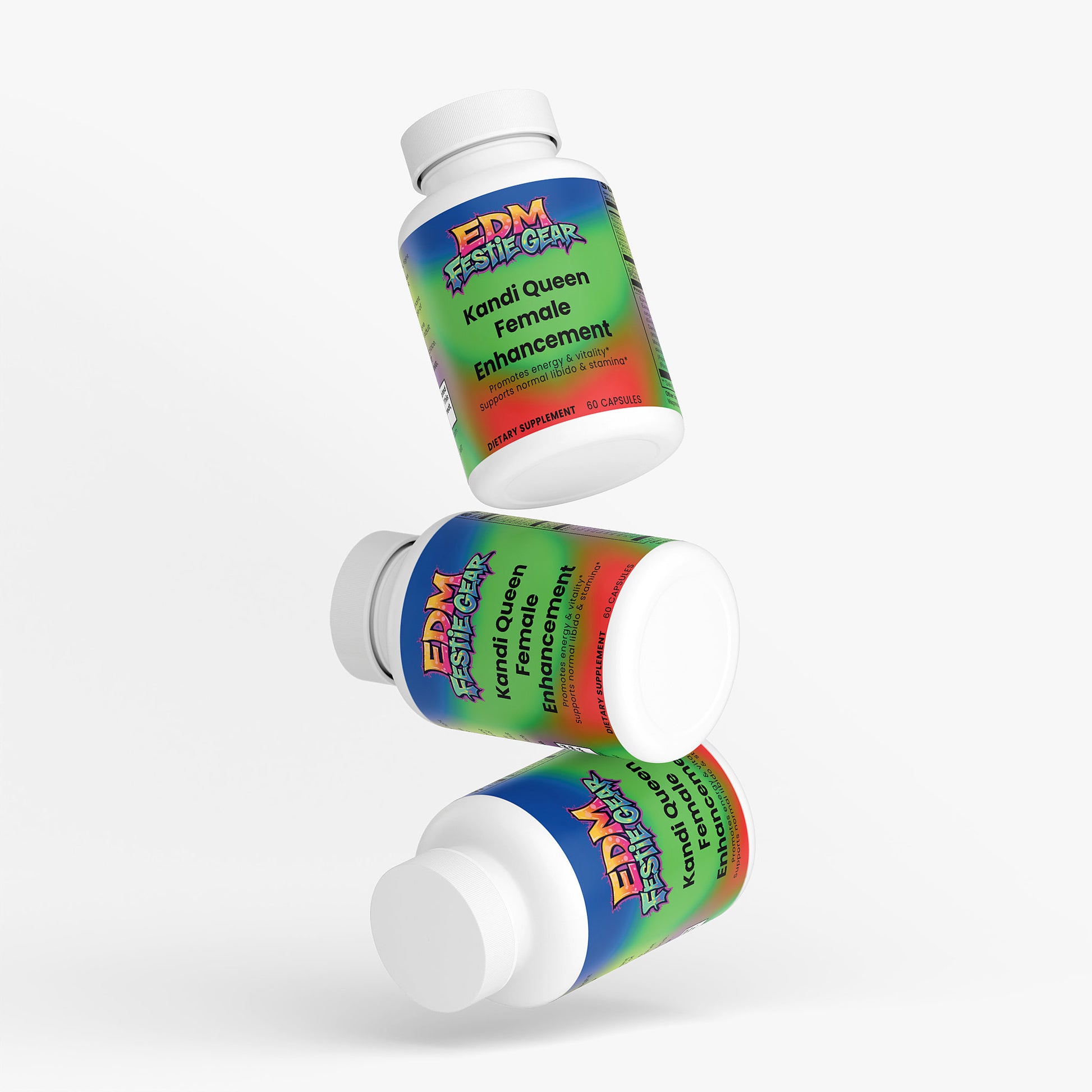 Feel the energy surge with Kandi Queen Female Enhancement—your ultimate festival companion! Packed with B-vitamins (B6, B12, Pantothenic Acid) to fuel your metabolism and keep you dancing all night, plus zinc for immune support. This powerhouse blend combines traditional herbal extracts like Tribulus, Ashwagandha, and Ginseng to promote balance and relaxation, while Damiana and Dong Quai round out the wellness vibe. L-Arginine supports healthy circulation, and BioPerine® Black Pepper Extract maximizes absorption. Designed for women who demand peak performance and vitality—because the rave never stops!