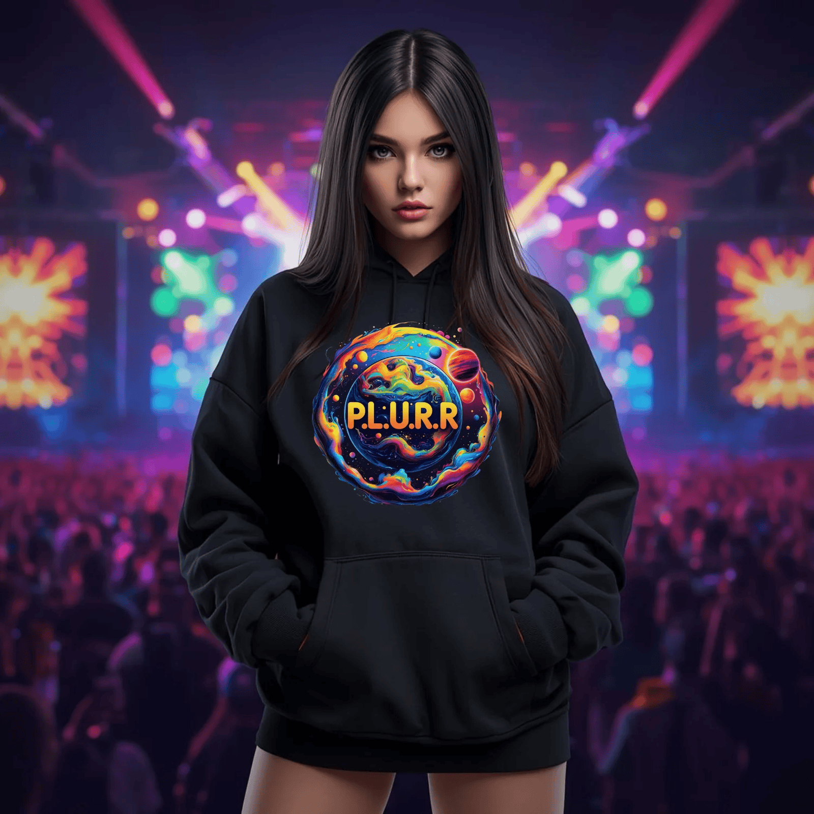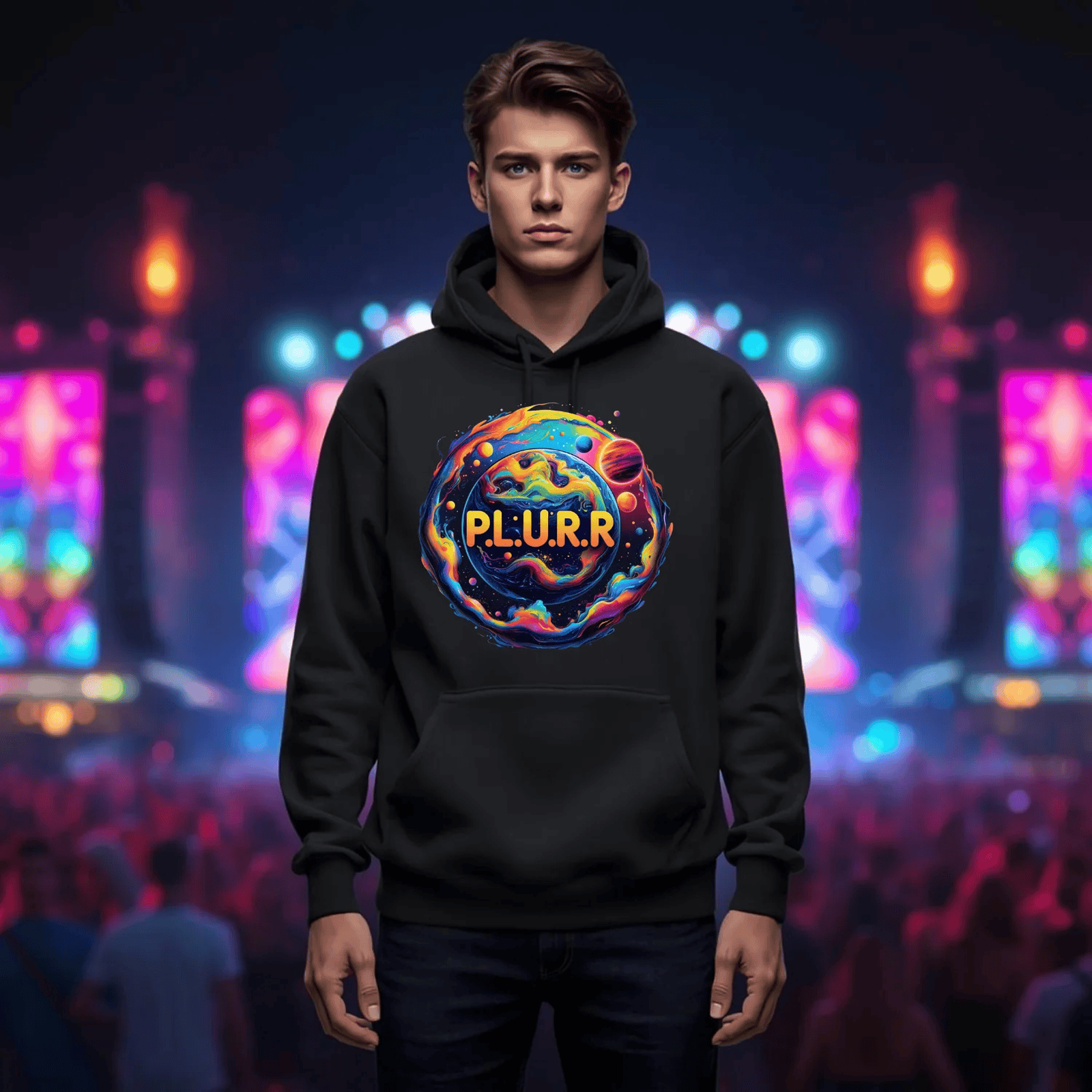 Whether you're rocking it during a daytime festival or layering it for a night of beats, our P.L.U.R.R in Space T-Shirt is designed to shine and stand out in any crowd. Embrace the EDM culture and express your unique vibe with this essential addition to your festival gear. Join the movement of good vibes and let your spirit soar across galaxies!