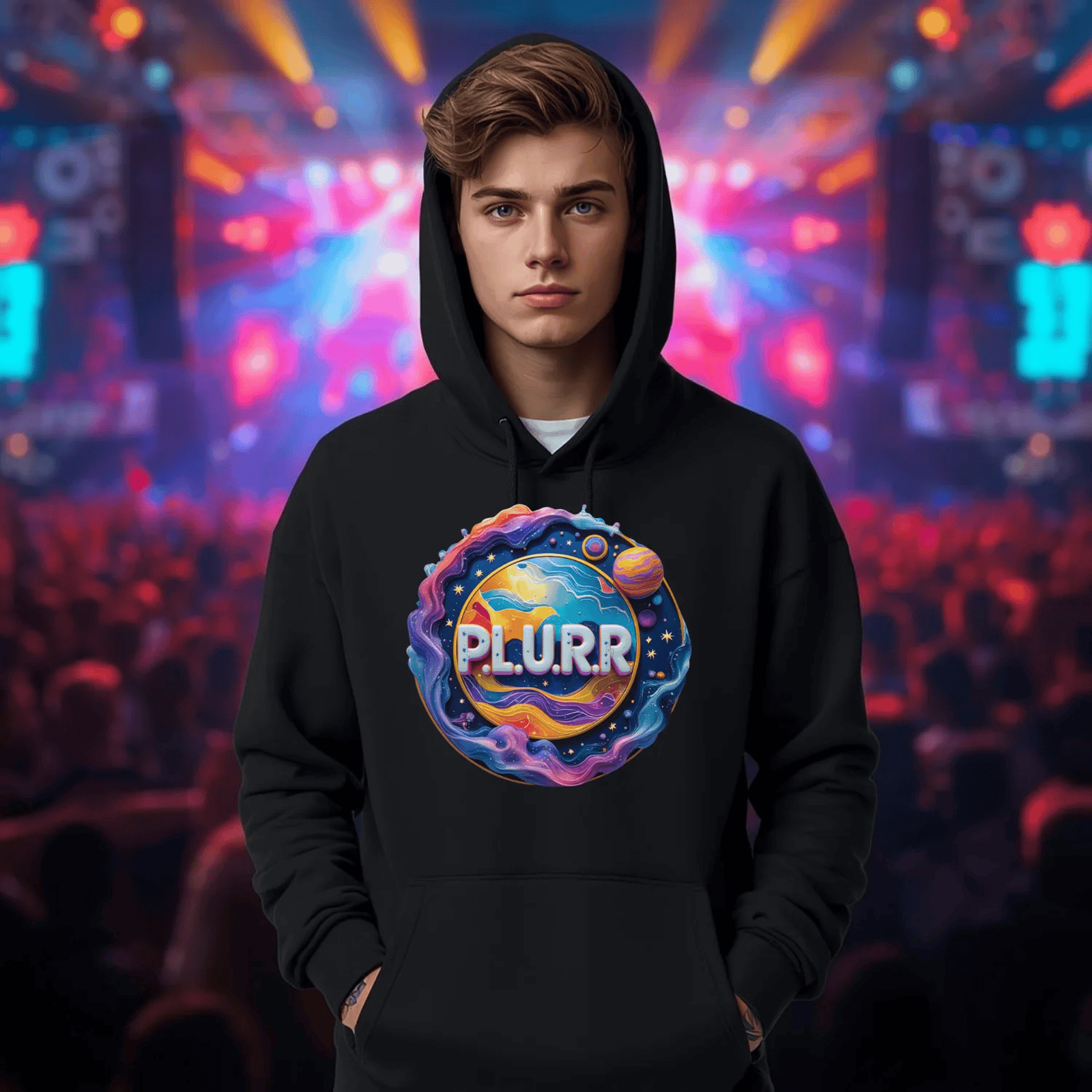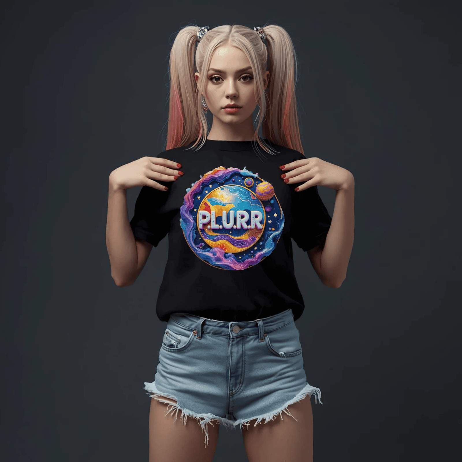 Join the raver community and let your P.L.U.R.R glow as you connect with fellow festival lovers. Wear it loud, wear it proud, and spread positivity wherever you go. This shirt is not just a piece of clothing; it’s a statement of love and unity in the vibrant world of EDM. Get ready to take on the galaxy—your festival journey starts here!