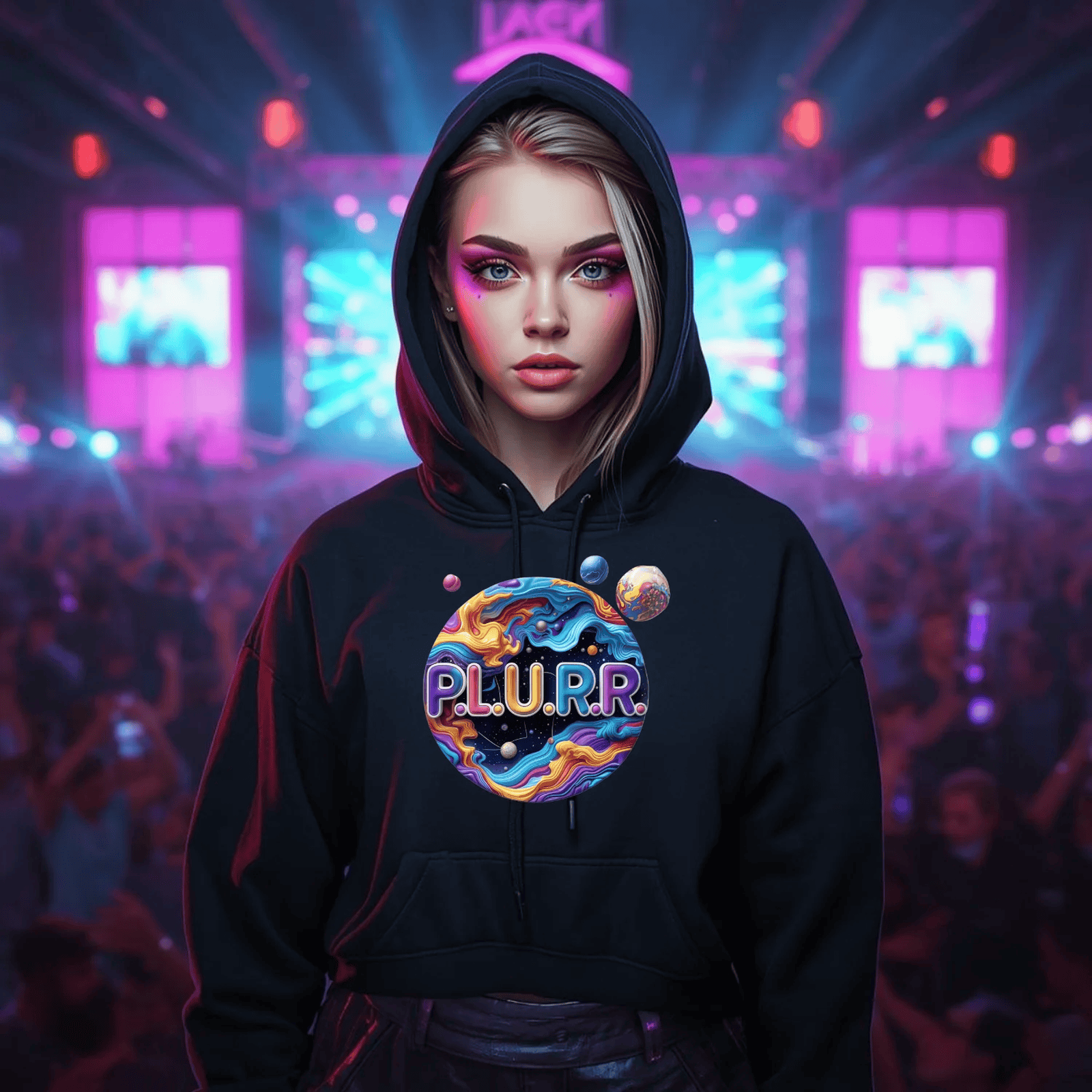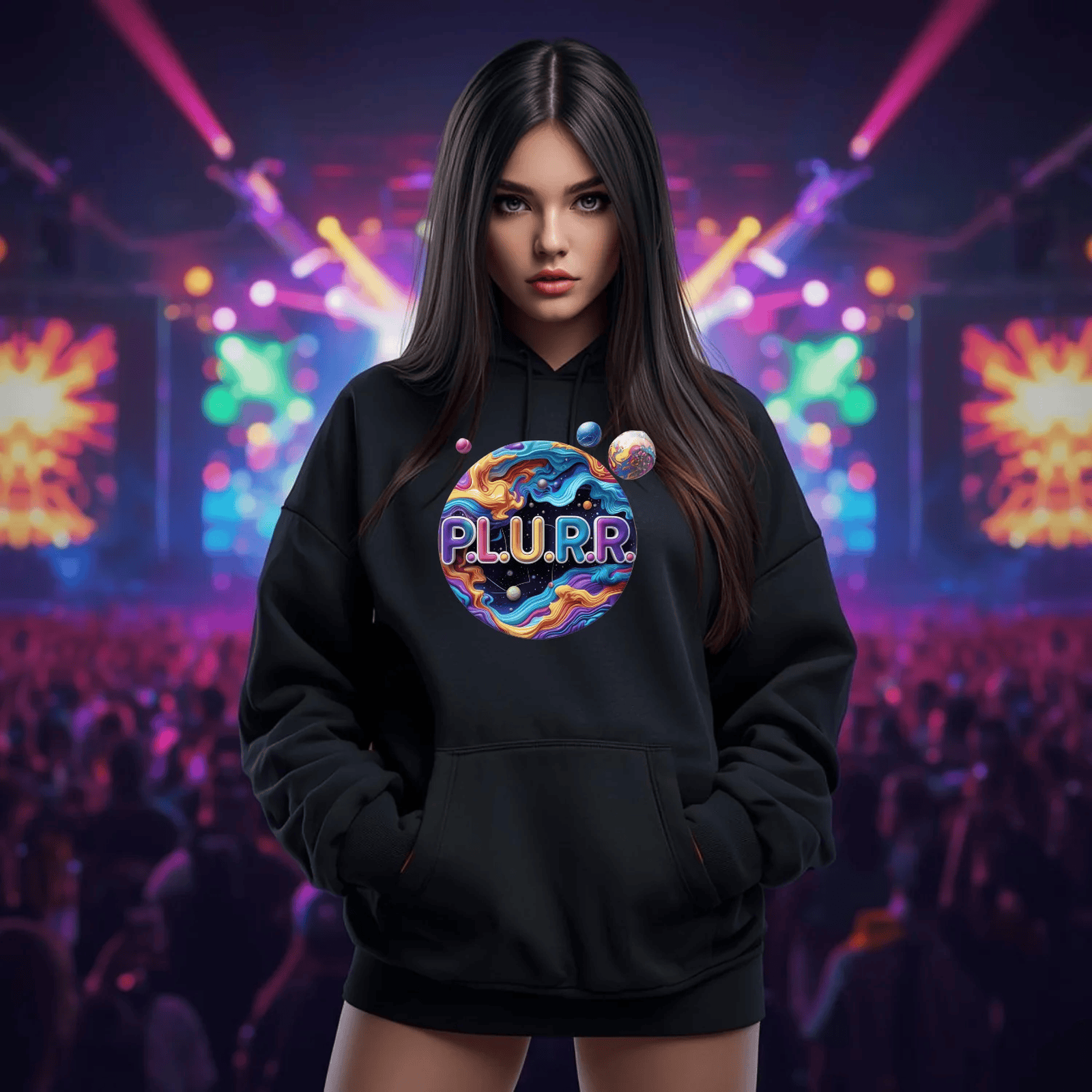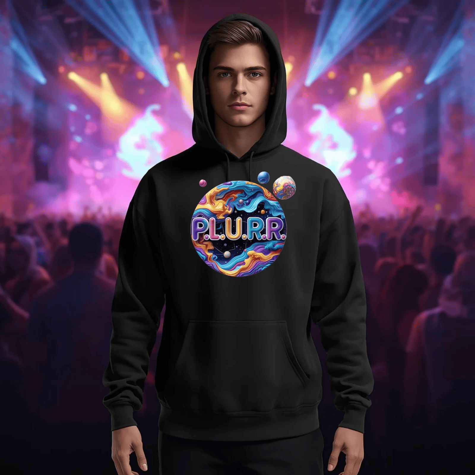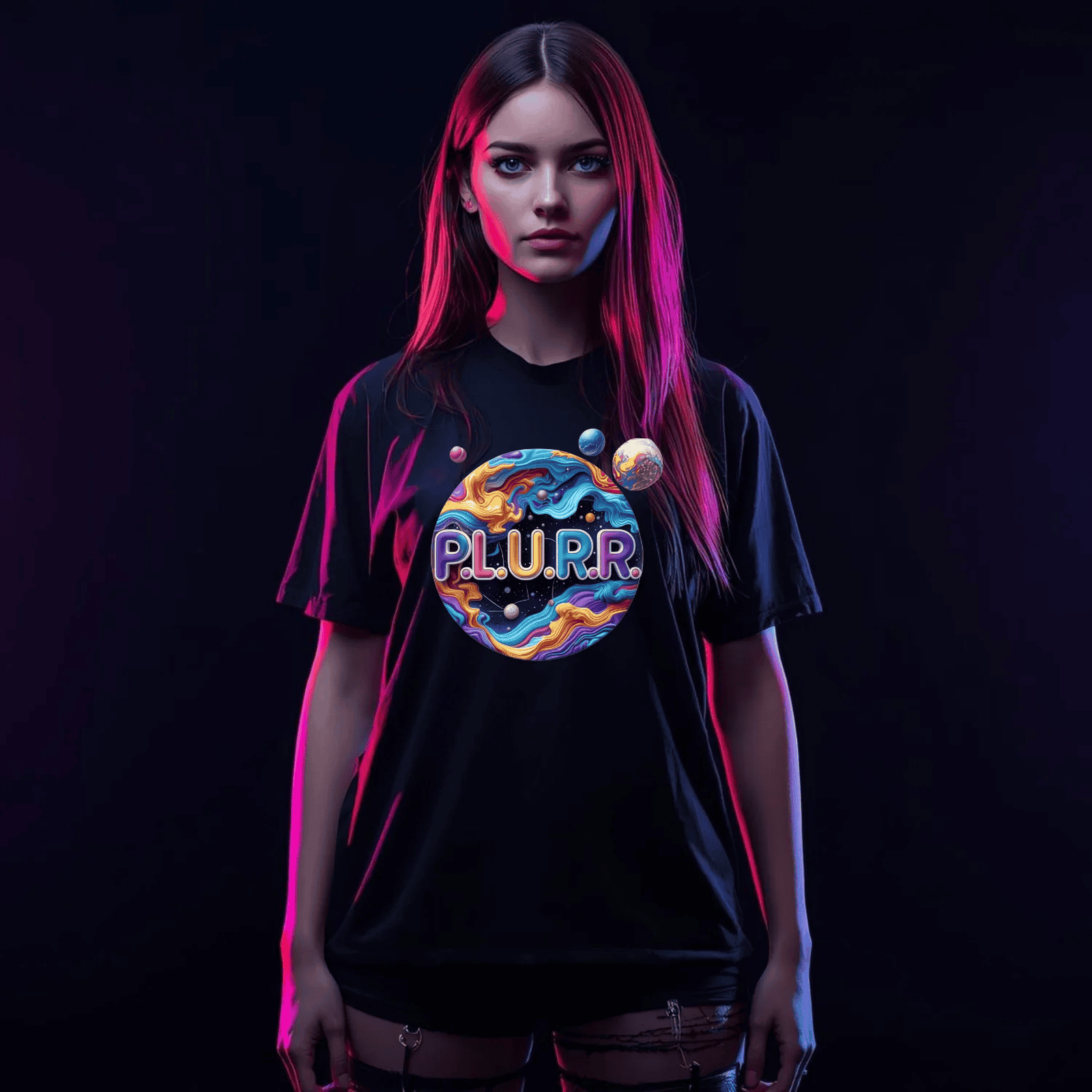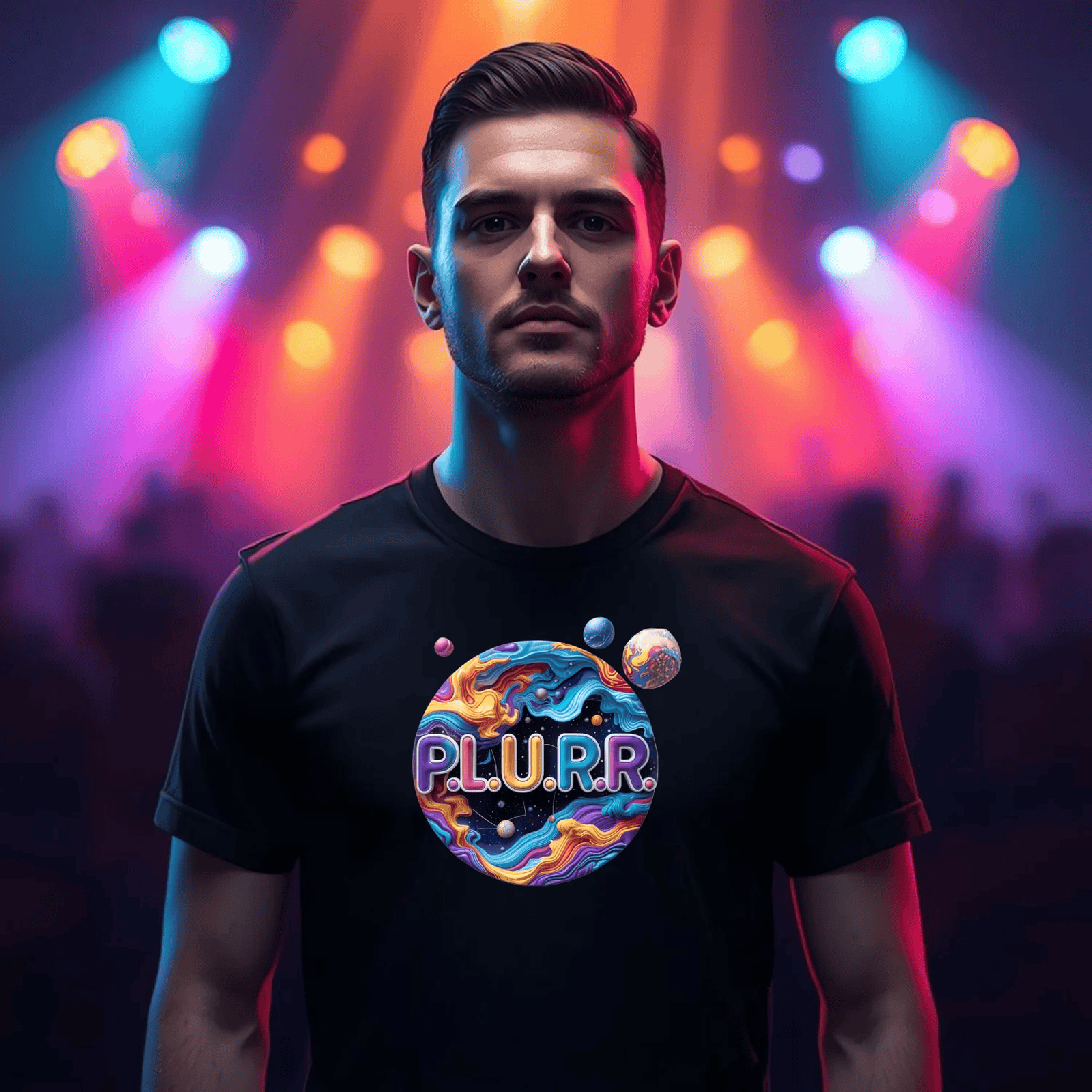 Radiate confidence and ignite the dancefloor with your unique style. The P.L.U.R.R Solar System Festival T-Shirt is not just apparel; it's a part of your festival journey, designed for those who live for the music, the lights, and the unforgettable moments shared with friends. Get ready to shine and let your presence illuminate every venue you enter!