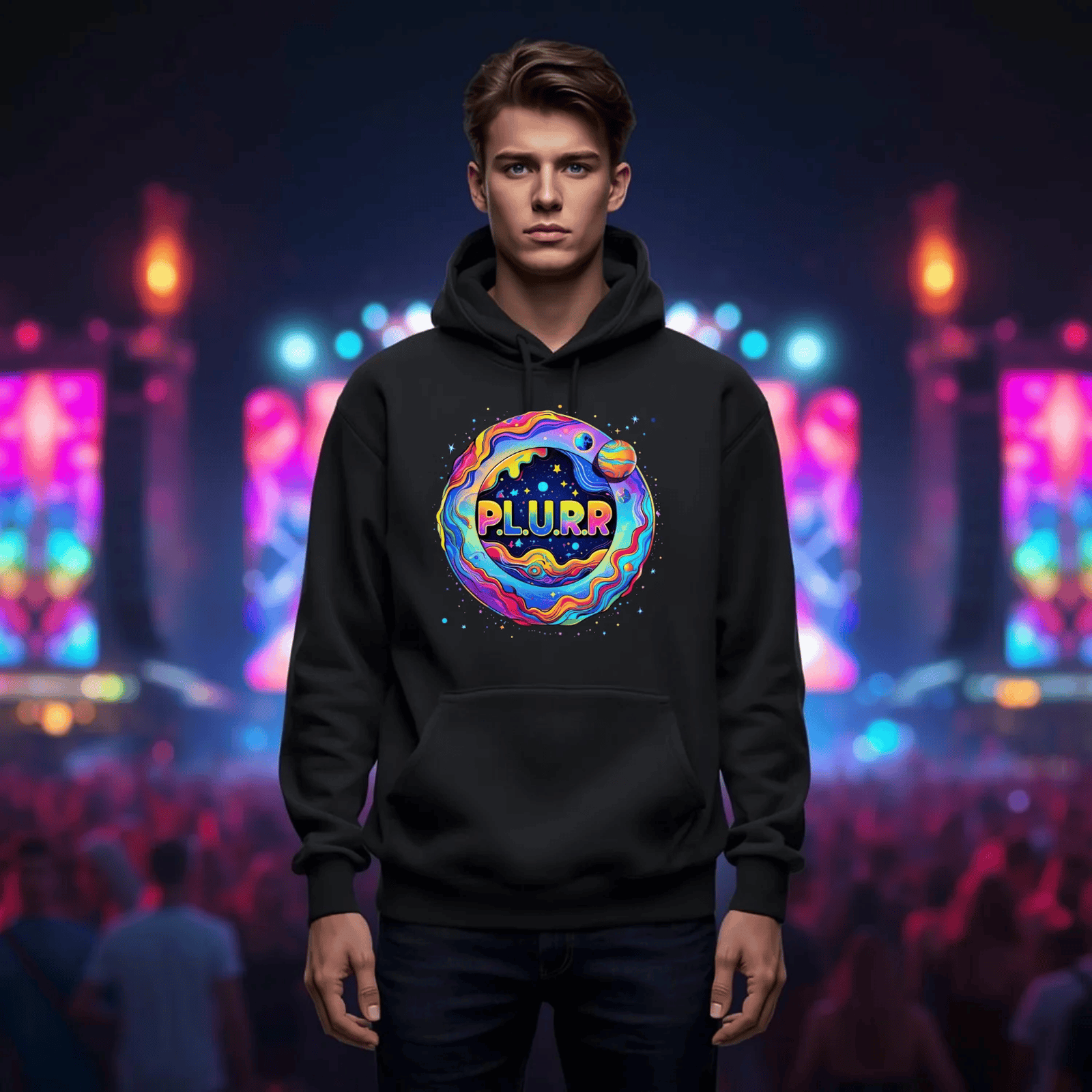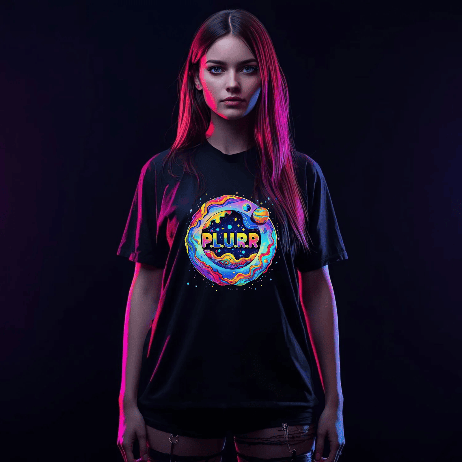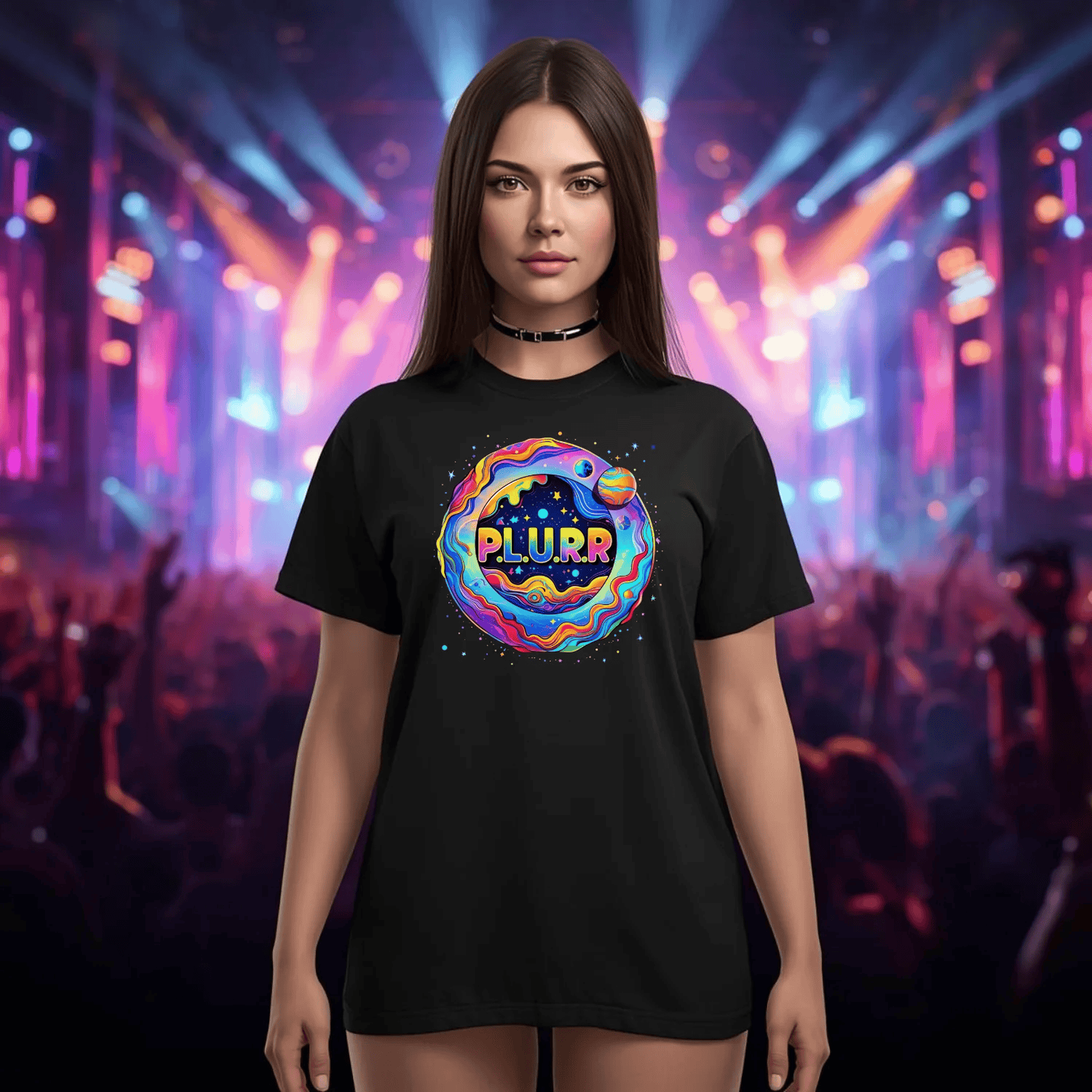 P.L.U.R.R Space Festival T-Shirt – Vibrant and Energetic Rave Apparel