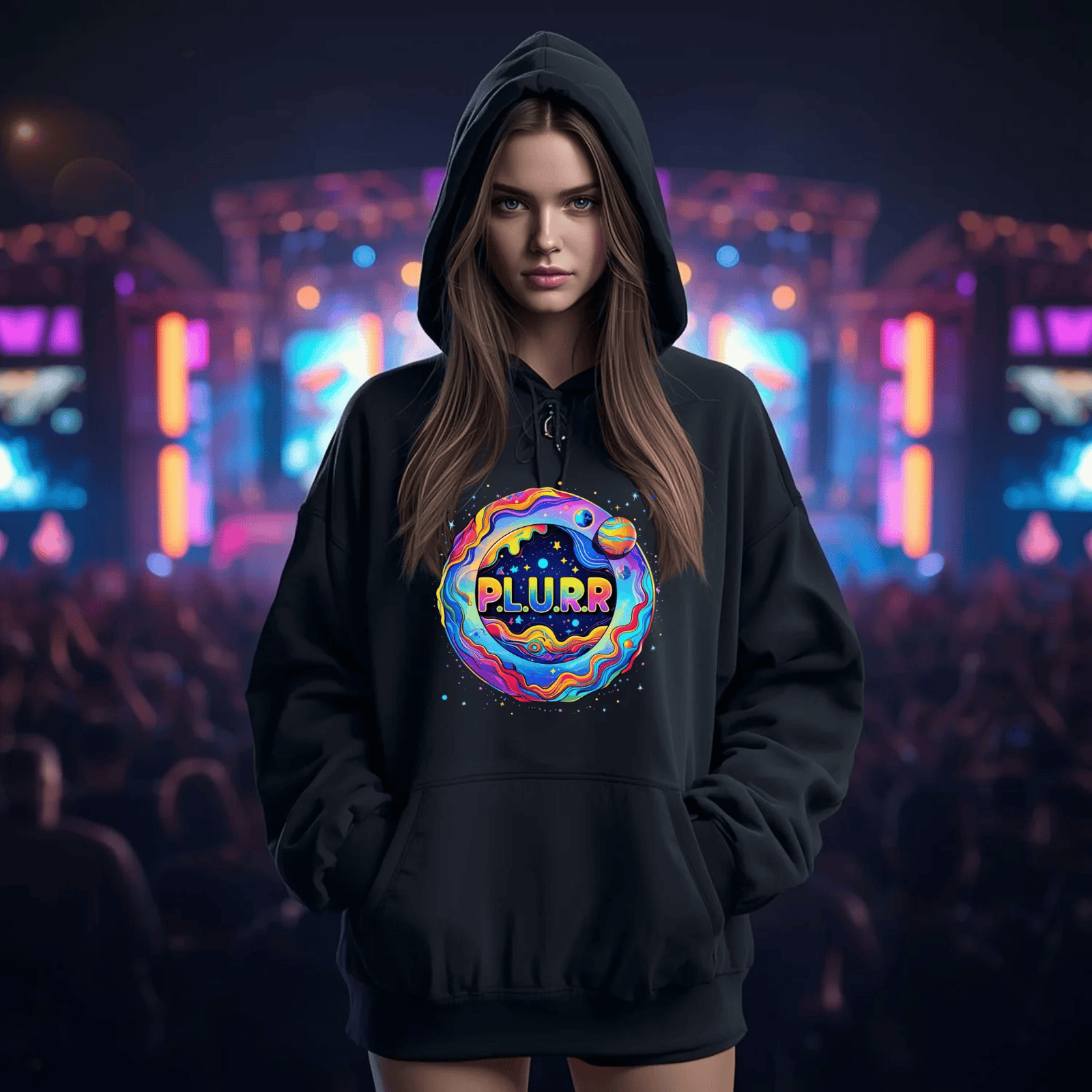 Wear the P.L.U.R.R Space Festival T-shirt to showcase your love for the culture and connect with fellow festival fam. It’s more than just a T-shirt; it’s a celebration of life, music, and togetherness. Grab yours today and get ready to shine bright, spread the love, and dance like nobody’s watching!