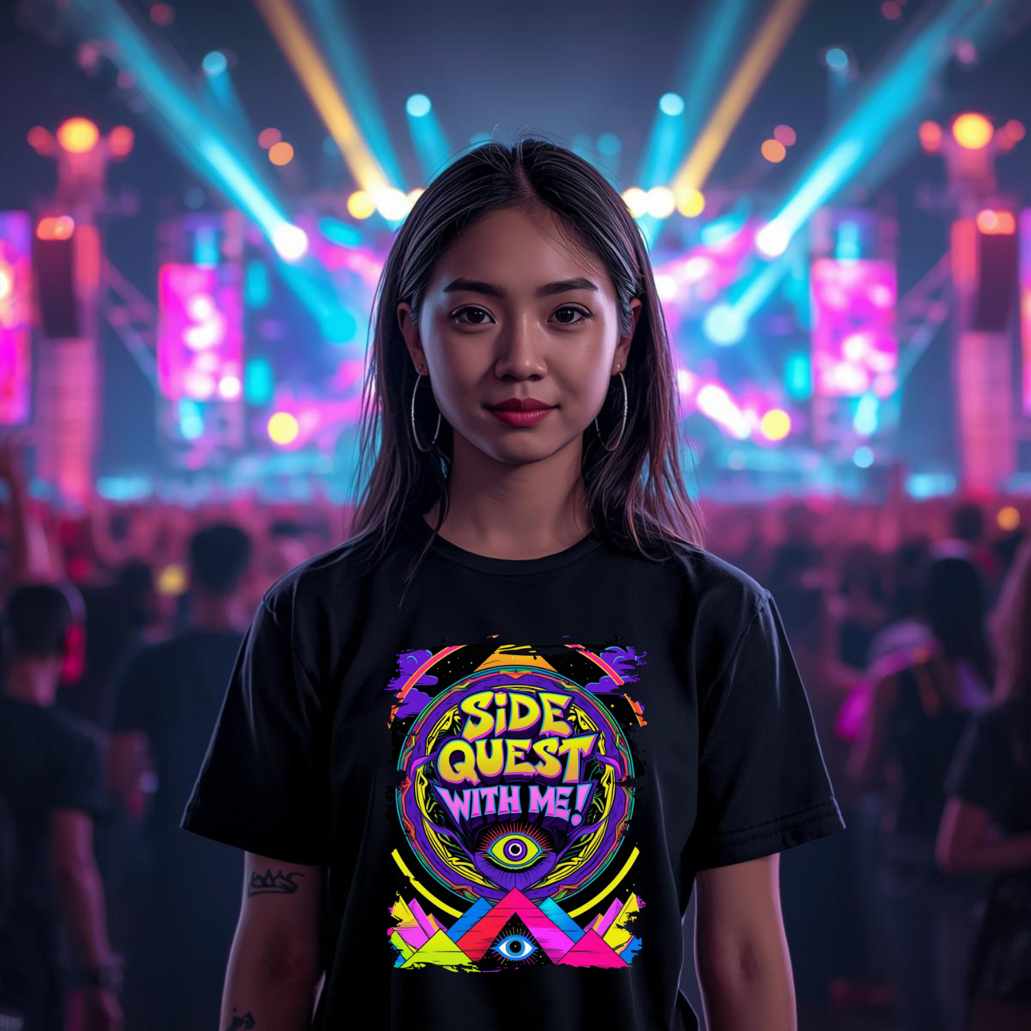Gather your squad and gear up for an unforgettable experience with the Side Quest Adventure Festival T-Shirt—the perfect emblem of your festival journey. This shirt isn’t just clothing; it’s your ticket to explore the vibrant festival landscape, where shared adventures and spontaneous connections await. Designed for the raver who thrives on unexpected moments, it’s a statement piece that signals your readiness to dive into the rhythm of the crowd.