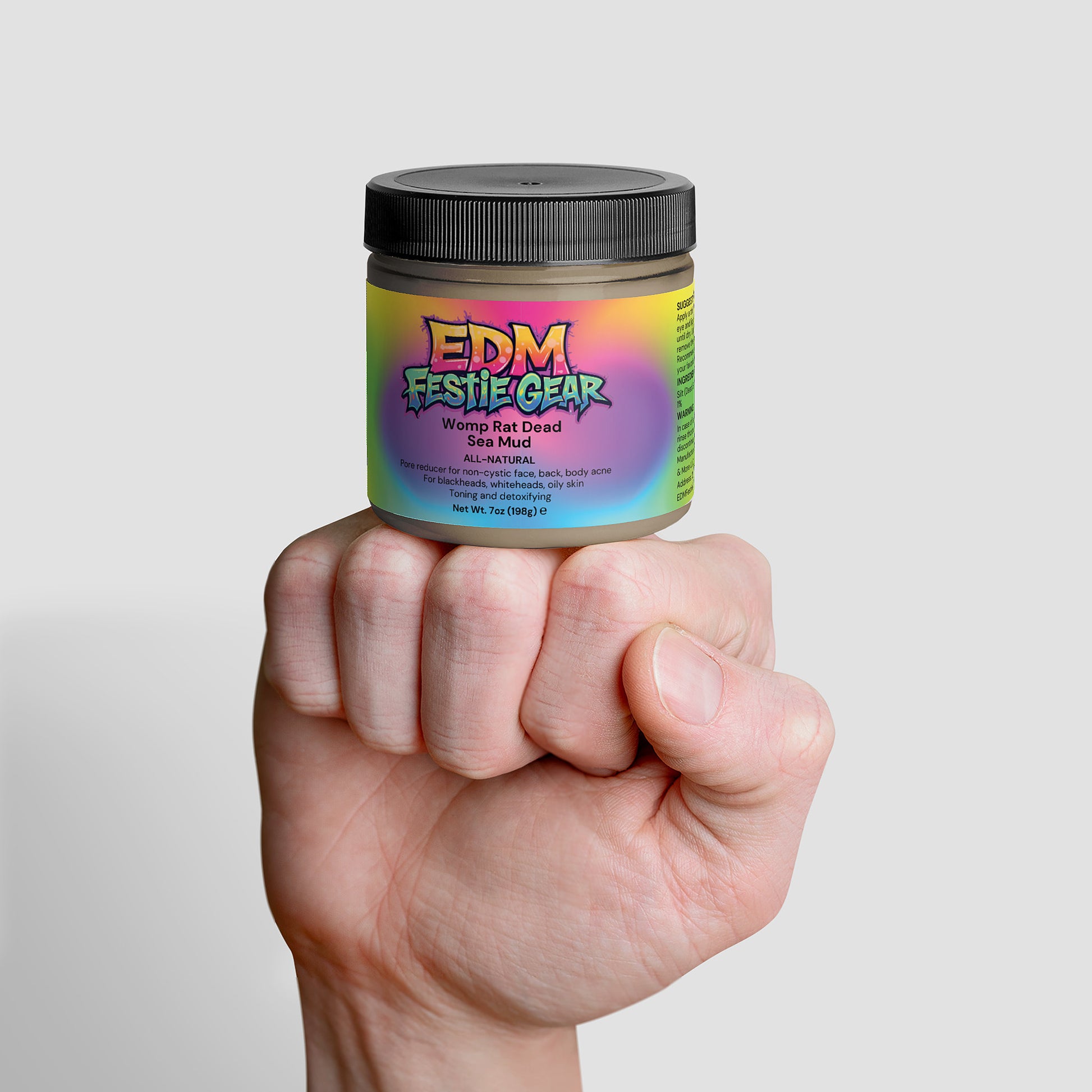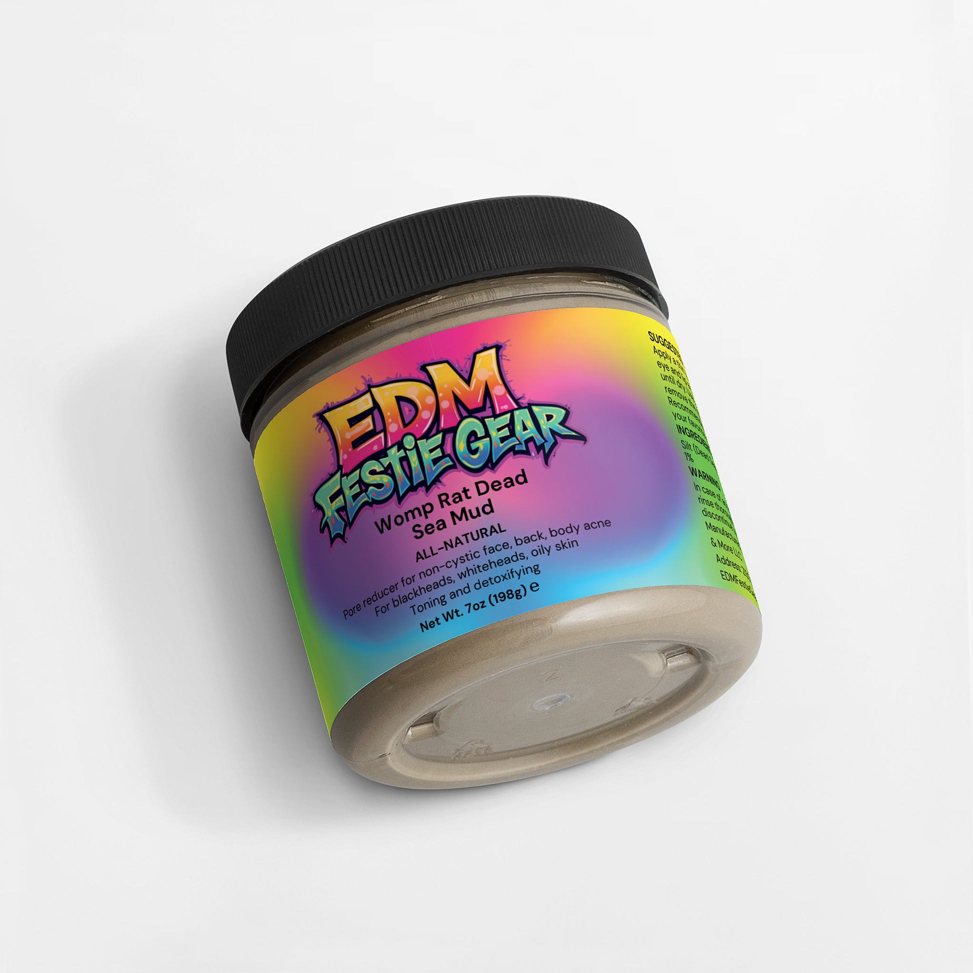 Let your skin glow as vibrantly as the lights at your favorite festival! Our Womp Rat Dead Sea Mud is expertly formulated to reveal your skin’s natural radiance and vitality. Say goodbye to dullness and hello to a complexion that’s as alive as your dance moves and as colorful as your EDM outfits. Perfect for use twice a week—simply apply a thin layer to clean skin, let it chill for 10-12 minutes, and rinse off with warm water. Embrace your festival style while keeping your skin flawless!